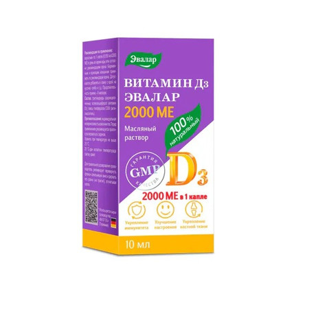 Натуральный витамин D способствует ускоренному восполнению его дефицита в организме, лучшему усвоению кальция, укреплению костей зубов, снижению риска развития остеопороза; повышению силы мышц; активации иммунитета на клеточном уровне и снижению риска развития простудных заболеваний. Участвует в поддержании сердечно-сосудистой, нервной систем и репродуктивной функции организма, в повышении уровня серотонина - "гормона счастья" и улучшении настроения. Прием 1 капли (2000 МЕ) обеспечивает суточную потребность в витамине D для взрослых - на 1000%.