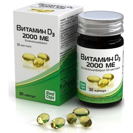 масло растительное (подсолнечное), холекальциферол (2000 МЕ витамина D3), оболочка капсулы (желатин, глицерин (влагоудерживающий агент), вода, бензоат натрия (консервант), ароматизатор пищевой "Этилванилин". Содержание в 1 капсуле, мкг, не менее 50