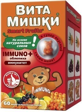 ВитаМишки® Immuno + облепиха рекомендуется детям с 3-х лет в качестве биологически активной добавки к пище - дополнительного источника витаминов С, Е, D, цинка, селена.