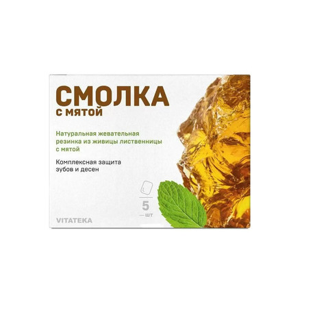 Смолка с мятой VITATEKA – 100 % натуральная жевательная резинка из живицы лиственницы.