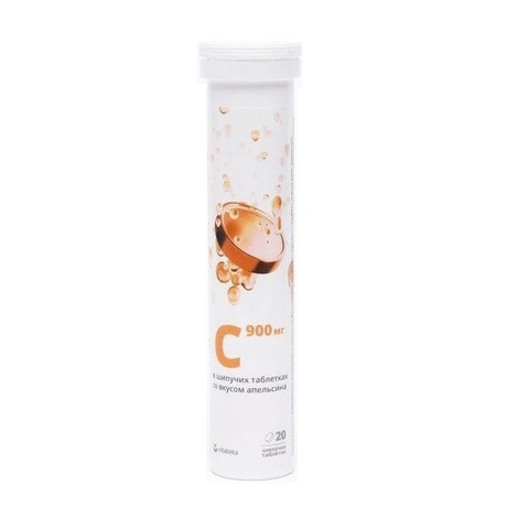 Биологически активная добавка к пище Витамин С 900 мг vitateka в форме шипучих таблеток со вкусом апельсина рекомендуется в качестве биологически активной добавки к пище - дополнительного источника витамина C. Витамин С (L-аскорбиновая кислота) – водорастворимый витамин, обладает иммуномодулирующим, общеукрепляющим и антиоксидантным свойствами. В естественном виде содержится в цитрусовых, шиповнике, листовых зеленых овощах, цветной и квашенной капусте. В организме человека не синтезируется, поэтому должен регулярно поступать с пищей или добавками. Способствует повышению сопротивляемости организма в периоды активного распространения вирусов. Поддерживает иммунную систему, увеличивая выработку интерферона и участвуя в производстве антител. L-аскорбиновая кислота участвует в синтезе коллагена, L-карнитина, серотонина и желчных кислот, способствует усвоению железа. Поддерживает в здоровом состоянии кровеносные сосуды, обеспечивая более высокую проницаемость капилляров, улучшает состояние кожи и костной ткани. Витамин С крайне неустойчив во внешней среде и быстро разрушается при нагревании. Экспериментально доказано, что аскорбиновая кислота облегчает течение коронавирусной инфекции у пациентов, которые имеют другие хронические заболевания. Также она способствует усиленной активизации иммунной системы, снижает уровень оксидативного стресса – процесса повреждения клетки в результате окисления, и защищает целый ряд внутренних органов.