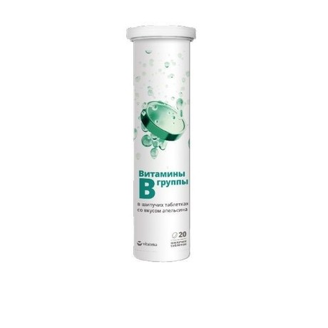 ВИТАТЕКА Витамины группы В шипучие таблетки со вкусом апельсина, 20 шт