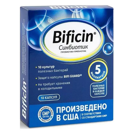 Капсулы, содержащие синбиотик Бифицин, защищены технологией Bifi Guard, что позволяет защитить полезные бактерии от кислого содержимого желудочного сока, солей желчи и пищеварительных ферментов. Такая защита позволяет им беспрепятственно пройти желудок, адаптироваться и прижиться в просвете кишечника, сохранив высокую биологическую активность, что положительно сказывается на восстановлении микрофлоры ЖКТ.