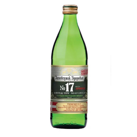 Минеральная вода «Заповедник Здоровья №17» 0,45 литра стекло (комплект - 12 шт.). Вода минеральная природная питьевая лечебная газированная «Заповедник Здоровья №17»(скважина 58 Южно-Калаборского месторождения) относится к группе хлоридно-гидрокарбонатных натриевых борных минеральных вод. Обладает высоким уровнем минерализации от 12,0 до 18,5 г/л. Имеет слабый запах йода и приятный терпкий вкус, оказывает комплексное лечебное воздействие на организм человека.