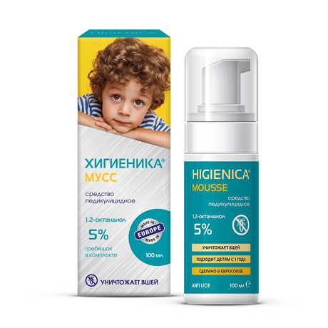 Хигиеника мусс является универсальным нетоксичным педикулицидным средством для избавления от головных вшей и гнид у детей от 1 года и взрослых. Может быть использован в целях профилактики при заражении одного из членов семьи. Мусс не имеет неприятного запаха, не склеивает волосы и не утяжеляет их. В комплекте присутствует специальный удобный гребешок для механического устранения вшей и гнид.