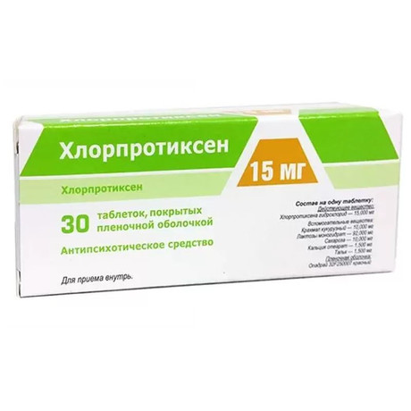 | Хлорпротиксен | Таб., покр. пленочной оболочкой, 15 мг: 10, 30, 50 или 60 шт. рег. №: ЛП-004840 от 11.05.18 *- Действующее* | |