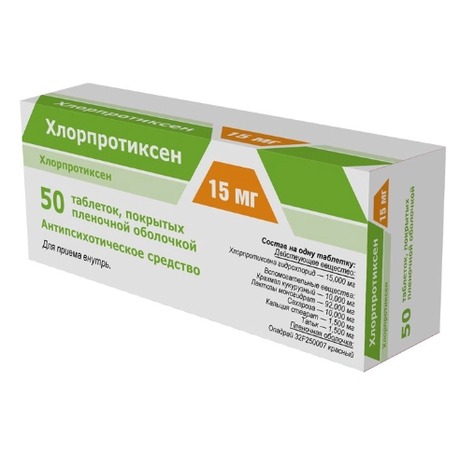 | Хлорпротиксен | Таб., покр. пленочной оболочкой, 15 мг: 10, 30, 50 или 60 шт. рег. №: ЛП-004840 от 11.05.18 *- Действующее* | |