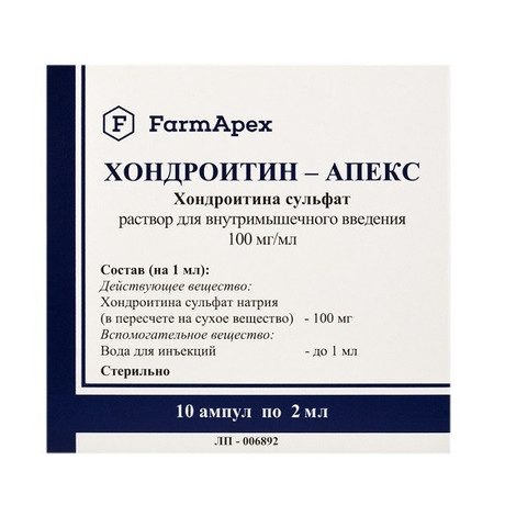 Хондроитин-Апекс | Р-р д/в/м введения 100 мг/1 мл: амп. 1 мл или 2 мл 5 или 10 шт. рег. №: ЛП-006892 от 05.04.21 *- Действующее* |