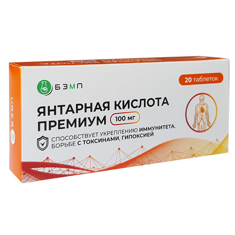 янтарная кислота; вспомогательные вещества: глюкоза, крахмал картофельный, тальк, кальция стеарат