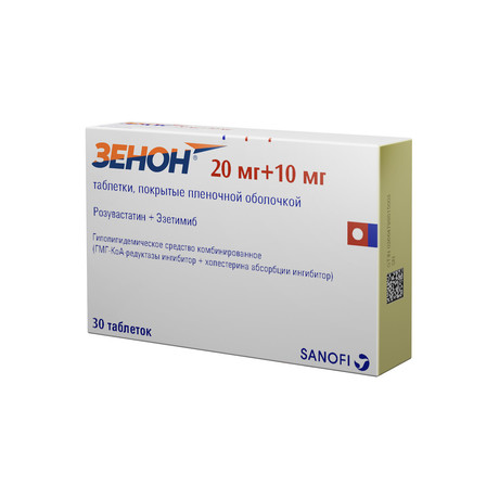ХС поступает в плазму крови в результате всасывания в кишечнике и эндогенного синтеза. Препарат Зенон® содержит эзетимиб и розувастатин, два гиполипидемических компонента, дополняющих друг друга по механизму действия. Комбинация розувастатин + эзетимиб снижает повышенную концентрацию общего холестерина (ОХС) в плазме крови, холестерина липопротеинов низкой плотности (ХС-ЛПНП), аполипопротеина В (Апо-B), триглицеридов (ТГ) и холестерина липопротеинов невысокой плотности (ХС-неЛПВП, рассчитывается как разность между концентрацией ОХС и концентрацией ХС-ЛПНП) и повышает концентрацию в плазме крови холестерина липопротеинов высокой плотности (ХС-ЛПВП) путем двойного ингибирования, как абсорбции, так и синтеза ХС.