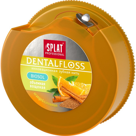 Бренд SPLAT (Сплат) - ведущий разработчик и производитель профессиональных решений в категориях ухода за полостью рта. ЗУБНАЯ НИТЬ СПЛАТ АПЕЛЬСИН/КОРИЦА 40М Внешний вид: Цвет нити: оранжевый, аромат апельсина и корицы. Особенности: 40 метров, блистер из 100% переработанного пластика, оранжевый цвет нити, содержит натуральное эфирное масло. НОВИНКА ОТ SPLAT инновационная зубная нить 40 метров! Попробуйте цитрусовую новинку SPLAT - вощеную объемную зубную нить Dental Floss с ароматом апельсина и корицы! Нить пропитана антибактериальным компонентом Biosol. Поэтому она не только механически очищает межзубные промежутки от остатков пищи, но и защищает зубы от кариесогенных бактерий. Волокна нити распушаются по технологии RiserFloss во время использования и бережно обрабатывают всю поверхность зуба, даже скрытую под десной. Клинически доказанная эффективность Dental Floss: Образование налета уменьшается на 69%. Кровоточивость десен снижается на 50%. Аромат апельсина и корицы успокаивает, снижает стресс и придает оптимизм. Яркий оранжевый цвет нити также настраивает на позитив. Длина флосса - целых 40 метров, которых вам хватит надолго! С заботой о природе мы упаковали продукт в блистер из 100% переработанного пластика. Результат: Идеальное очищение межзубных промежутков.