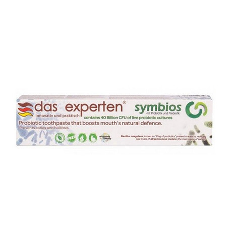 Пробиотическая зубная паста das experten symbios восстанавливает микрофлору полости рта. Предотвращает кариес и неприятный запах изо рта. Основное действие Инновационная зубная паста ТМ «das experten» symbios с пробиотическими бактериями Bacillus coagulans способствует восстановлению естественной микрофлоры ротовой полости, защищает от воспаления десен и стоматита. Bacillus coagulans борется с вредоносными бактериями Streptococcus mutans, являющимися одной из причин образования кариеса, и другими патогенами, провоцирующими неприятный запах изо рта. Преимущества Бактерия Bacillus coagulans в составе зубной пасты известная еще как “король пробиотиков”, предотвращает кариес, уменьшая уровень патогенов Streptococcus mutans.