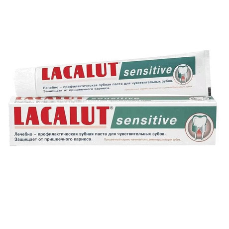 Зубная паста Lacalut sensitive содержит двойную комбинация фторидов, которая позволяет реминерализовать зубную эмаль и снизить ее чувствительность. Антисептик и лактат алюминия в составе пасты снижают воспаление и кровоточивость десен, которые часто сопровождают повышенную чувствительность зубов в области шейки. Растительный компонент бисаболол усиливает противовоспалительное действие зубной пасты.
