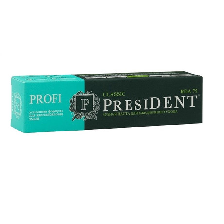 Бренд PresiDENT Линия Profi (PROFESSIONAL) - ПРОФЕССИОНАЛЬНАЯ КОЛЛЕКЦИЯ - Коллекция специализированных средств по лечению и уходу за полостью рта. Для тех, кому нужен дополнительный уход за зубами и деснами. Зубная паста PRESIDENT PROFI Classic (75 RDA) - для ежедневного ухода со фтором, ксилитом и растительными антисептиками - Эффективно очищает - Защищает от кариеса - Реминерализирует эмаль - Освежает дыхание