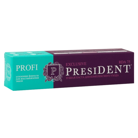 Зубная паста PRESIDENT PROFI Exclusive (75 RDA) - для комплексного ухода, с тонизирующим эффектом, сильными антисептическими свойствами и фтором.
