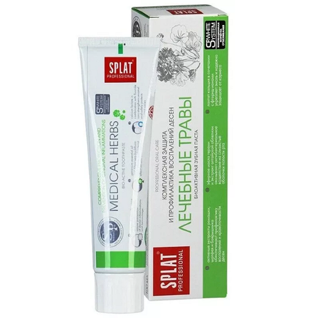КОМПЛЕКСНАЯ ЗАЩИТА И ПРОТИВОВОСПАЛИТЕЛЬНОЕ ДЕЙСТВИЕ НА ДЕСНЫ ЗАЩИТА ОТ БАКТЕРИЙ!* Гелевая натуральная зубная паста СПЛАТ Лечебные травы изумрудного цвета от кровоточивости десен содержит экстракты лечебных растений для эффективного ухода за зубами и деснами. Обладает противовоспалительным и кровоостанавливающим действием.