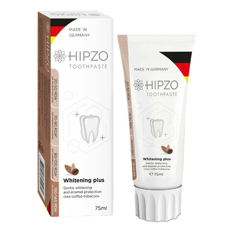 Зубная паста Hipzo Whitening Plus безопасно отбеливает и защищает, реминерализует зубную эмаль и уменьшает налет, вызванный употреблением табака, кофе и чая.
