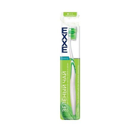 Зубная щетка EXXE с мягкой щетиной с зеленым чаем — это удобная эргономичная ручка, экстракт зеленого чая и ультратонкие заостренные щетинки. Удобный изгиб ручки позволяет легко и без дополнительного давления на десны очистить дальние поверхности. Экстракт зеленого чая для бережной чистки и непревзойденного ухода за чувствительными зубами и деснами. Ультратонкие заостренные щетинки деликатно и бережно воздействуют на зубную эмаль, не травмируя поверхность зубов.