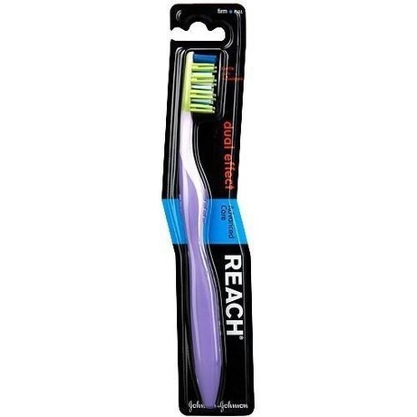 Резиновые пальчики зубной щетки REACH DUAL EFFECT по бокам щетины мягко массируют десны. Выступ на кончике щетки чистит заднюю поверхность передних и дальних зубов. Удобный дизайн ручки.