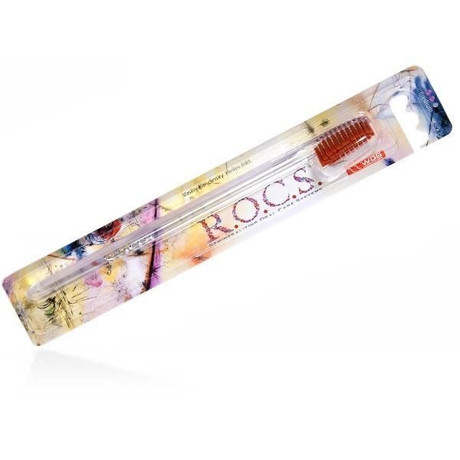 Классическая зубная щётка R.O.C.S. позволит профессионально очищать зубы. Уникальная форма головки зубной щетки R.O.C.S. - скошенная к концу головки щётки подстрижка щетины - повышает качество чистки поверхности зубов и позволяет с легкостью проникать в труднодоступные участки зубного ряда, а так же качественно очищать пространство между зубами, не повреждая десны. Тонкая плоская прозрачная ручка обеспечивает необычайную маневренность на всех участках зубного ряда.