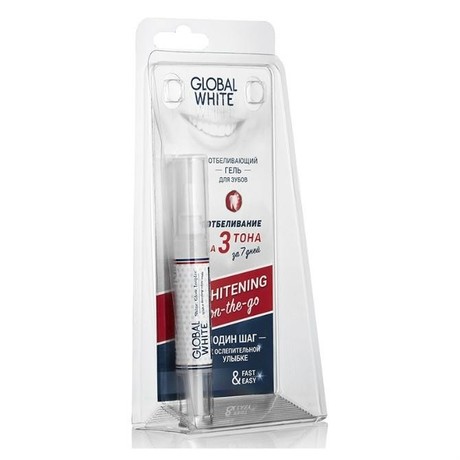 Отбеливающий гель Global White эффективно отбеливает зубы на 3-4 тона. В процессе отбеливания выделяется активный кислород, который расщепляет окрашивающие эмаль пигменты. Наличие калия нитрата в составе геля препятствует появлению чувствительности зубов. Ксилитол подавляет размножение кариесогенных бактерий в полости рта.