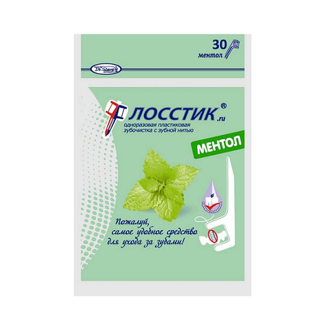 DR STEVE ЗУБОЧИСТКА С НИТЬЮ/ МЕНТОЛ - одноразовая пластиковая зубочистка с нитью и ароматизатором. Универсальное средство, для всех категорий пользователей . Внешний вид и свойства: пластик, зелёный цвета, запах мяты После каждого приема пищи на зубах остается налет. Если его не удалять, то со временем он твердеет, уходя под десну. Главная опасность, которую несут зубные отложения - это бактерии. Именно они приводят к кариесу и воспалению десен. Зубочистка с зубной нитью эффективно помогает избавиться от остатков пищи, удаляет зубной налёт в тех случаях, когда недоступны другие способы чистки зубов и в случае профилактики зубной гигиены. Зубочистка с зубной нитью обладает двумя свойствами: зубочистка и зубная нить, которые способствуют бережному очищению зубов. Нить легко проникает между зубами, удобно и эффективно удаляет частички пищи и отложения зубного камня. Поддерживает здоровое состояние зубов, защищает их от разрушения, предотвращая заболевания десен и неприятный запах изо рта. Специально разработанный дизайн зубочисток «Флосстик» со сгибающейся головкой с нитью позволяет ухаживать за всеми участками полости рта.